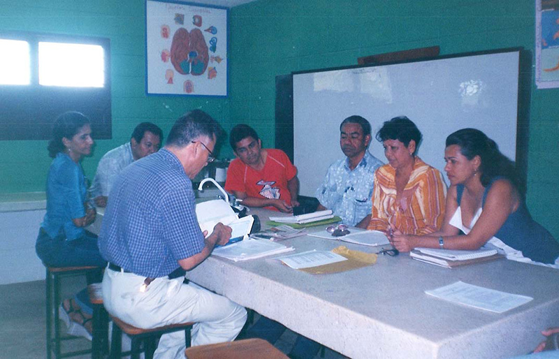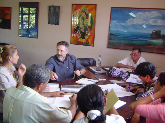 Organización del Proyecto Interdisciplinario Curricular (PIC). En la foto en primer plano José Gregorio Rodríguez, director del Programa RED de la Universidad Nacional, de frente de izquierda a derecha los docentes; Elida Ditta, Manuel Serge, Diego Feria, Luis Hoyos,…