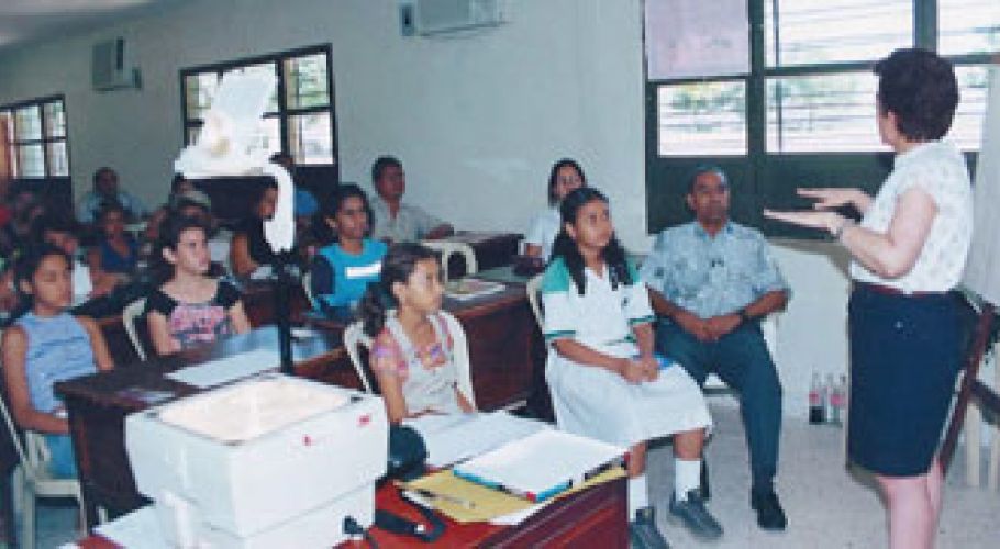 La foto recoge instantes en que la Coordinadora del Programa de Prevención y desastres del Programa RED de la Universidad Nacional , Luz María Villegas se dirige a estudiantes y docentes de colegios de Barranquilla que asistieron al Seminario Taller sobre…