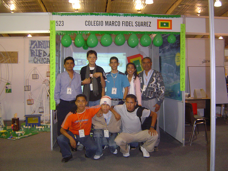 Colectivo de estudiantes y docentes del proyecto arroyos de Barranquilla en el stand de la IED Marco Fidel Suárez, en el marco de Expociencia 2005.