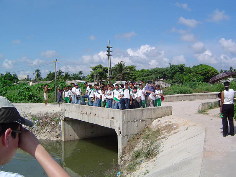 Colectivo de estudiantes del proyecto arroyos de Barranquilla durante una visita al arroyo Don Juan.